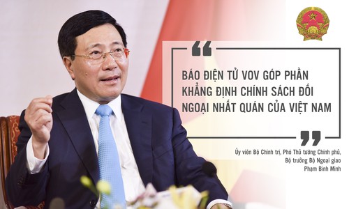 Báo điện tử VOV góp phần khẳng định chính sách đối ngoại nhất quán của Việt Nam 9:37, 01/07/201916/03/2021 by VOV 20 namVOV.VN - Nhân dịp Báo Điện tử VOV tròn 20 tuổi, Ủy viên Bộ Chính trị, Phó Thủ tướng, Bộ trưởng Bộ ngoại giao Phạm Bình Minh gửi đến các đồng chí lãnh đạo và toàn thể cán bộ, nhân viên Báo Điện tử VOV lời chúc mừng tốt đẹp nhất.